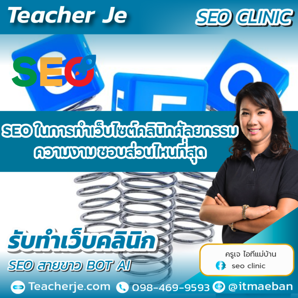 ***สำหรับผู้ที่สนใจเรียนคอร์สทำเว็บไซต์ SEO ขาวและรับทำเว็บไซต์คลินิกศัลยกรรมความงาม ติดต่อสอบถามและปรึกษาฟรีได้ที่ Teacher Je ***