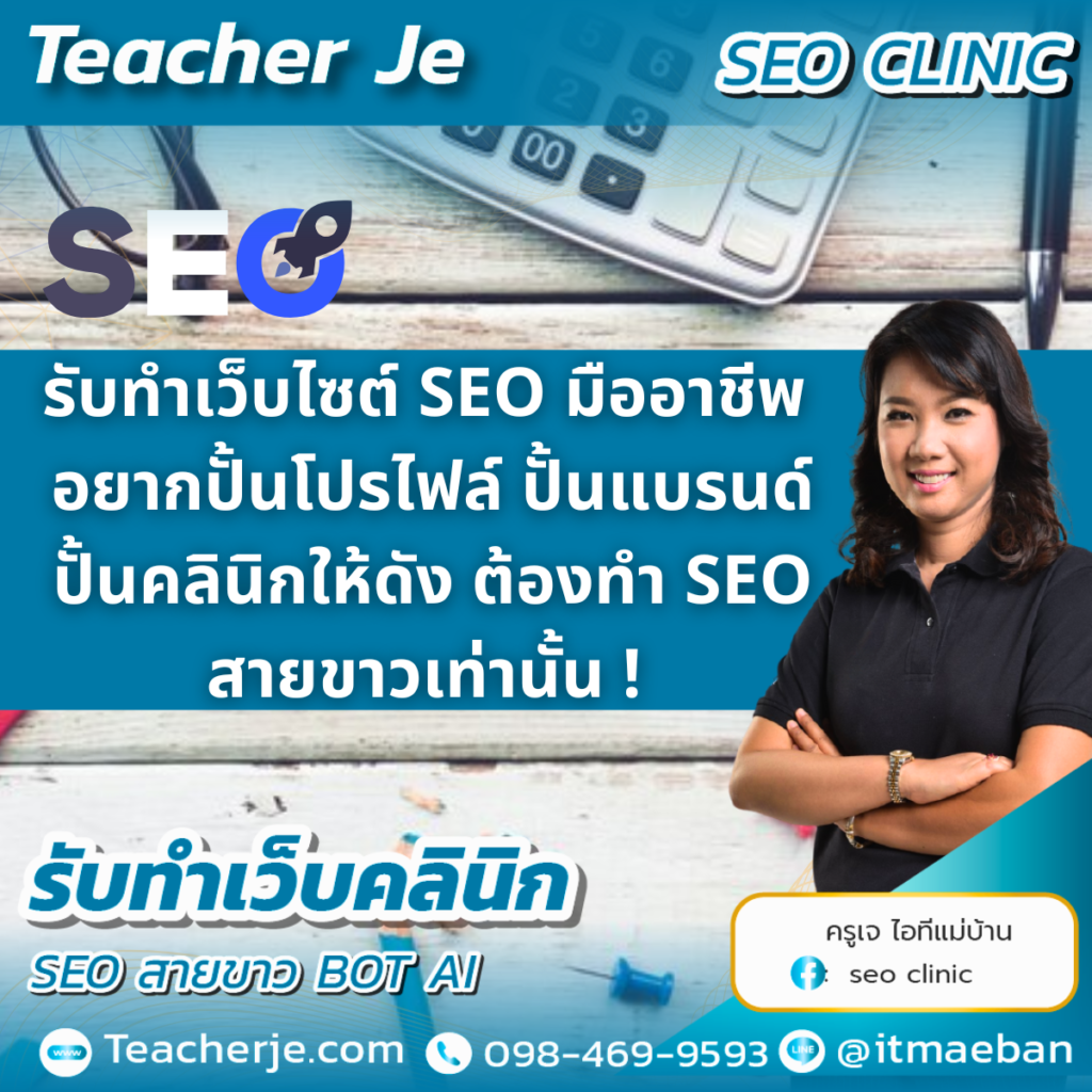 ***สำหรับผู้ที่สนใจเรียนคอร์สทำเว็บไซต์ SEO ขาวและรับทำเว็บไซต์คลินิกศัลยกรรมความงาม ติดต่อสอบถามและปรึกษาฟรีได้ที่ Teacher Je ***