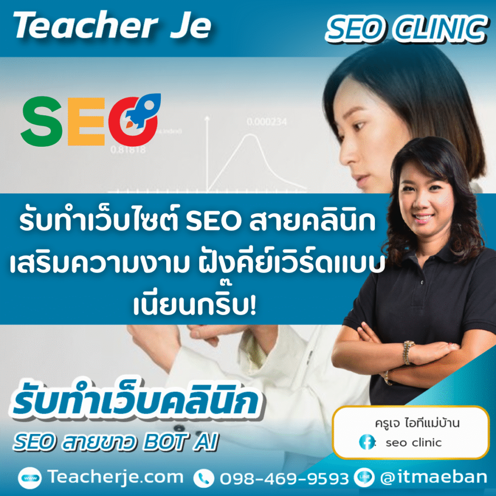 ***สำหรับผู้ที่สนใจเรียนคอร์สทำเว็บไซต์ SEO ขาวและรับทำเว็บไซต์คลินิกศัลยกรรมความงาม ติดต่อสอบถามและปรึกษาฟรีได้ที่ Teacher Je ***