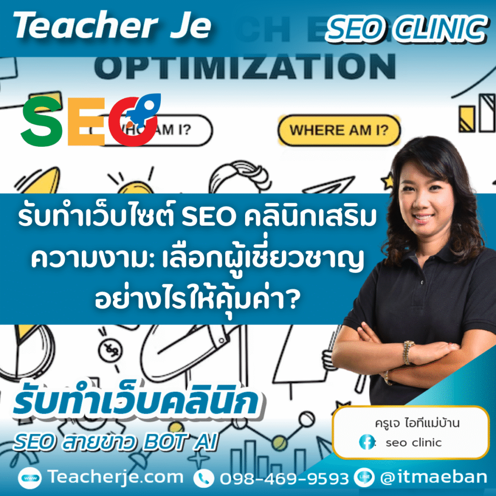 ***สำหรับผู้ที่สนใจเรียนคอร์สทำเว็บไซต์ SEO ขาวและรับทำเว็บไซต์คลินิกศัลยกรรมความงาม ติดต่อสอบถามและปรึกษาฟรีได้ที่ Teacher Je ***