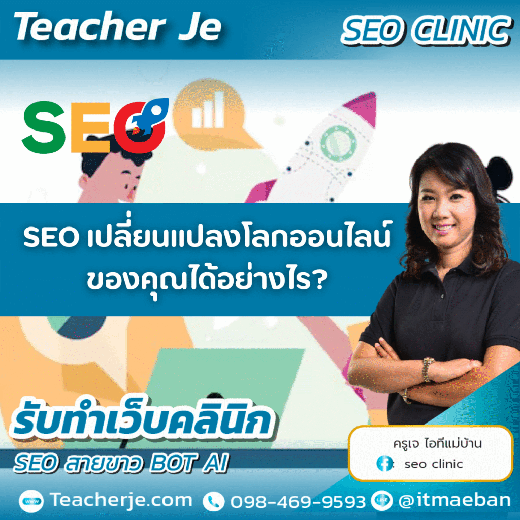 SEO ไม่ได้เป็นเพียงแค่เทคนิคเบื้องหลังเว็บไซต์ แต่เป็น "พลังขับเคลื่อน" ที่เปลี่ยนแปลงวิธีที่เราใช้ชีวิต ทำงาน และเชื่อมต่อกันในโลกออนไลน์ การทำความเข้าใจและใช้ประโยชน์จาก SEO อย่างถูกต้อง จะช่วยให้คอนเทนต์ของคุณถูกค้นพบ เข้าถึงกลุ่มเป้าหมายที่ใช่ และสร้างผลลัพธ์ที่น่าทึ่ง ไม่ว่าคุณจะเป็นใคร ทำอะไร การเรียนรู้ SEO คือการเปิดประตูสู่โอกาสใหม่ๆ ในโลกดิจิทัลที่เปลี่ยนแปลงอยู่ตลอดเวลา! แสบสะดิ้ง ครูเจ ขอเป็นกำลังใจให้ ทุกคน คว้าพลัง SEO มาสร้างความสำเร็จนะคะ!