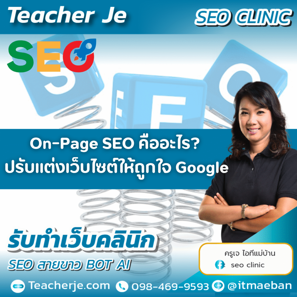 สวัสดีค่ะทุกคน! วันนี้ครูเจจะพาทุกคนมาเจาะลึกเรื่องที่สำคัญมากๆ สำหรับเว็บไซต์ของคุณ นั่นก็คือ On-Page SEO ค่ะ ถ้าคุณอยากให้เว็บไซต์ของคุณติดอันดับ 1 บน Google ถูกค้นหาเจอบ่อยๆ และเป็นที่รักของคนค้นหา บทความนี้มีคำตอบและเทคนิคที่คุณต้องรู้ค่ะ!